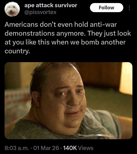 ☆ Yσɠƚԋσʂ ☆@lemmy.ml to Memes@lemmy.mlEnglish · 4 hours agoAmericans right nowlemmy.mlimagemessage-square3linkfedilinkarrow-up1130arrow-down19