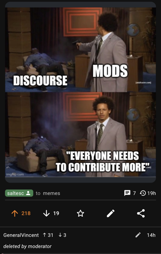 Coincidentally, the meme was about mods on shitposts lol. I’ll be banned soon 🫡