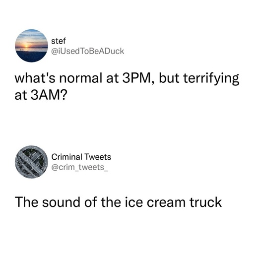 minus-squarejupyter_rain@discuss.tchncs.delinkfedilinkarrow-up1·10 months agoThe sound of children playing in the woods.