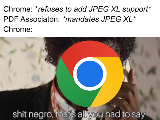 arrow-up1446arrow-down1imageGoogle Chrome must be coerced into adopting standardslemmy.worldTheTwelveYearOld@lemmy.world to memes@lemmy.worldEnglish · 24 days agomessage-square52linkfedilink