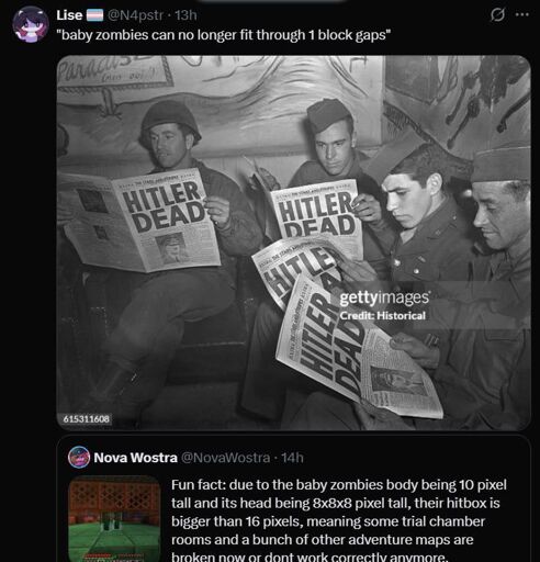 they fixed this in today’s snapshot, baby zombies can once again fit through 1 block gaps lol