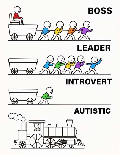 The leader picture should be identical to the boss one except the leader should be saying “We’re all pulling together!” while whiping.